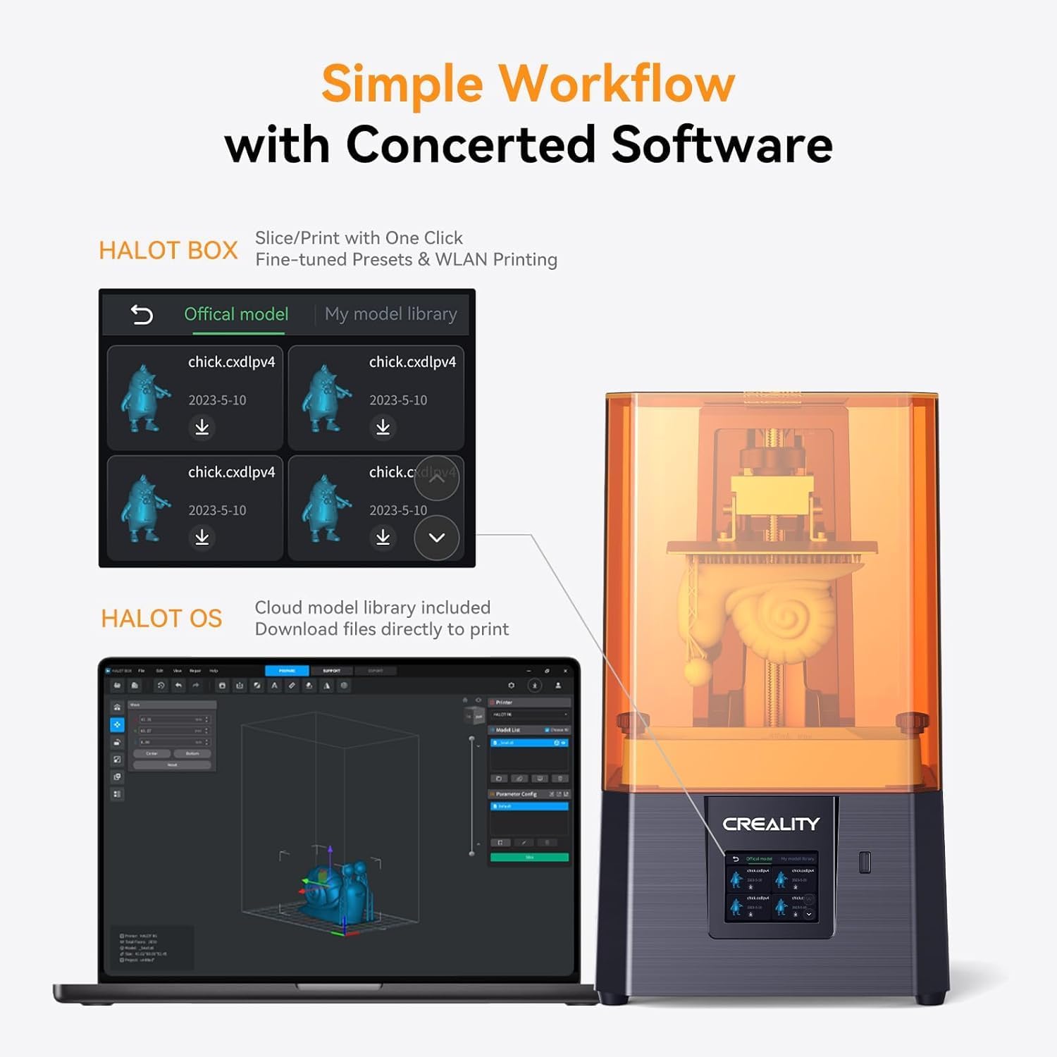 طابعة رزين 2K مقدمة من شركة كريالتي. حجم شاشة الطباعة 6.08 انج. سرعة الطباعة 60 ملم\سا. مصدر ضوئي تكاملي. متوافقة مع جميع انواع الرزين 405 نانومتر.